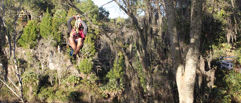 The highest heights in Florida can be found on this high-flying aerial adventure that takes you soaring through our Sky High Canyon! This newest addition to our park packs huge thrills into a small budget. All three zip lines on this tour tower above our other lines! The longest line stretches out across the entire Sky High Canyon at a staggering 1,150 feet long and 155 feet off the ground! The final zip of this tour will have you soaring over Gator Lake at an incredible speed!
