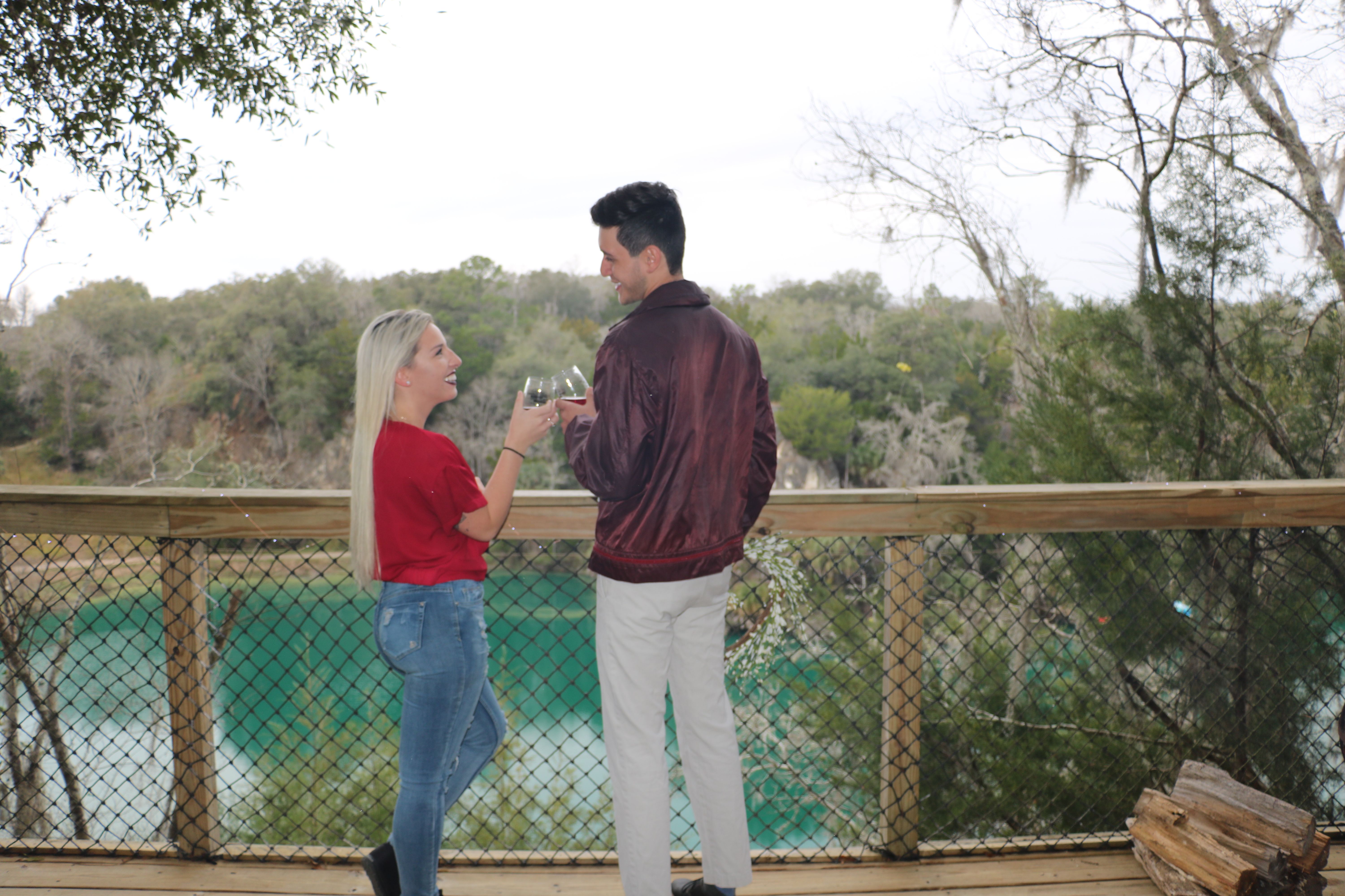 After your exhilarating tour, you'll be whisked away to a secluded VIP cliffside deck, where a fireside paradise awaits. Enjoy an intimate table for two, adorned with a delectable charcuterie arrangement and a bottle of fine wine from Florida’s renowned Island Grove Winery. As the evening deepens, you’ll be able to indulge in the sweetness of the moment with our s’mores package by roasting marshmallows together over the warm glow of the fire.